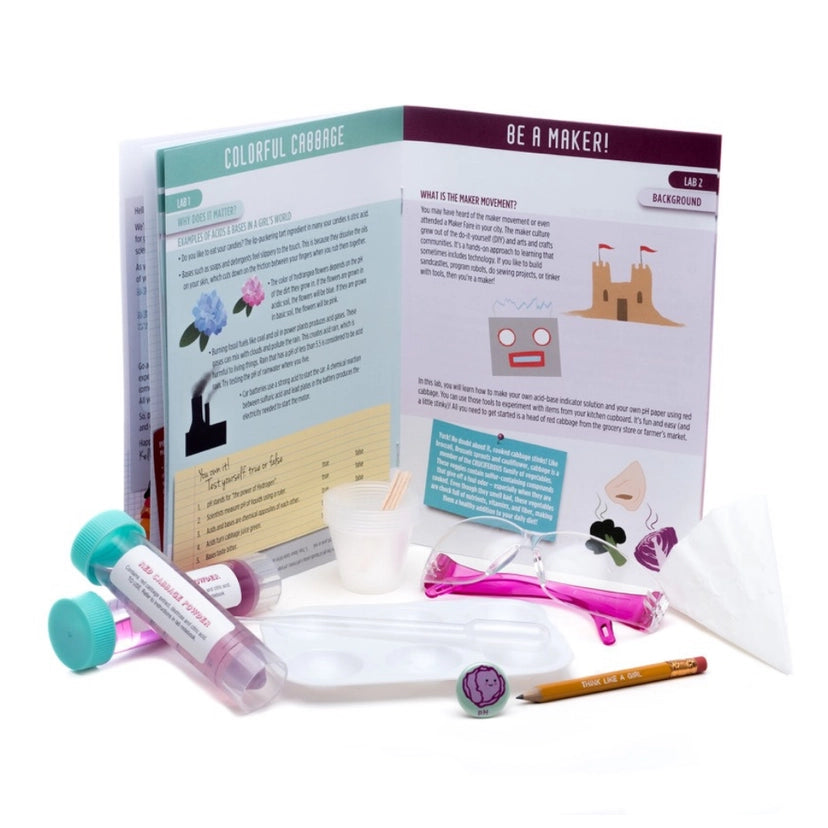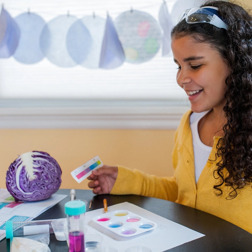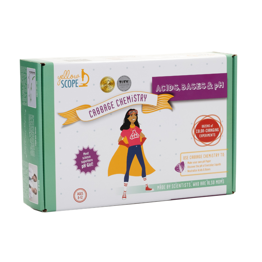 Did you know that red cabbage is a natural acid-base indicator? This award-winning chemistry kit comes with test tubes of concentrated red cabbage powder and all the supplies for dozens and dozens of color-changing experiments! With superhero pH Girl as their guide, kids will have a blast making their own pH paper and discovering the pH of everyday acids and bases like detergent, baking soda and lemon juice. For ages 8-12,