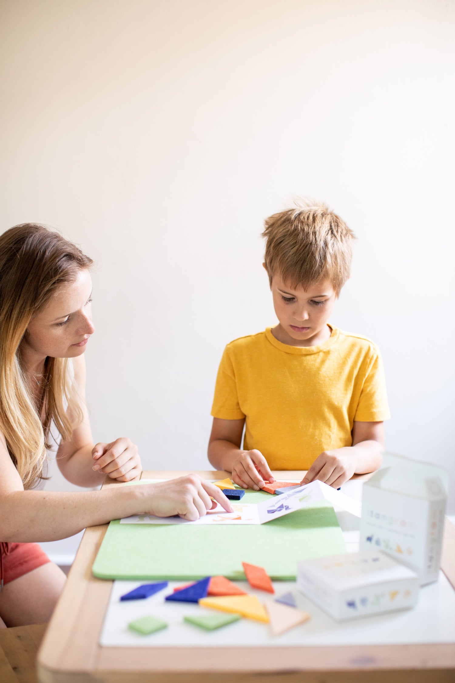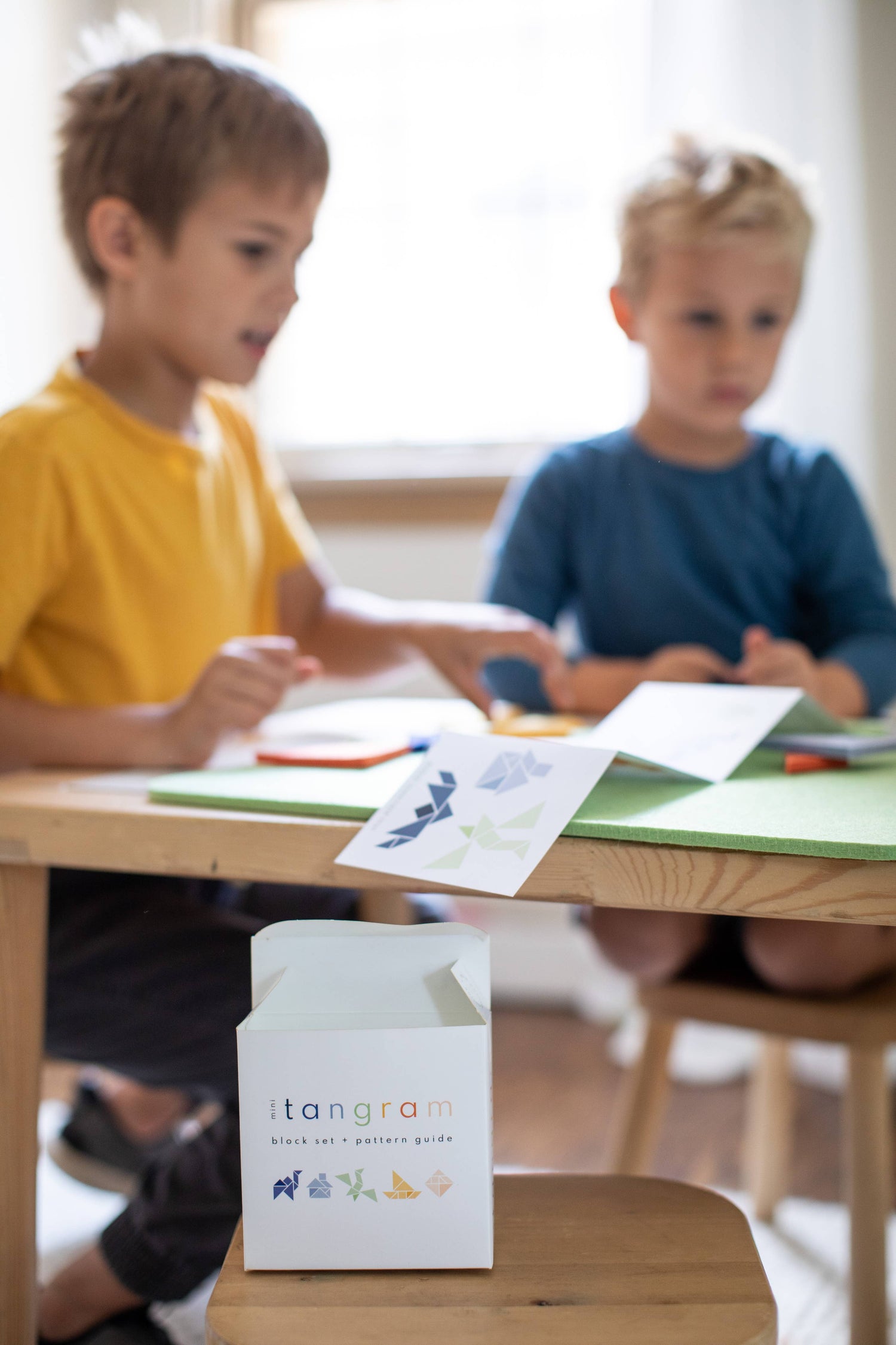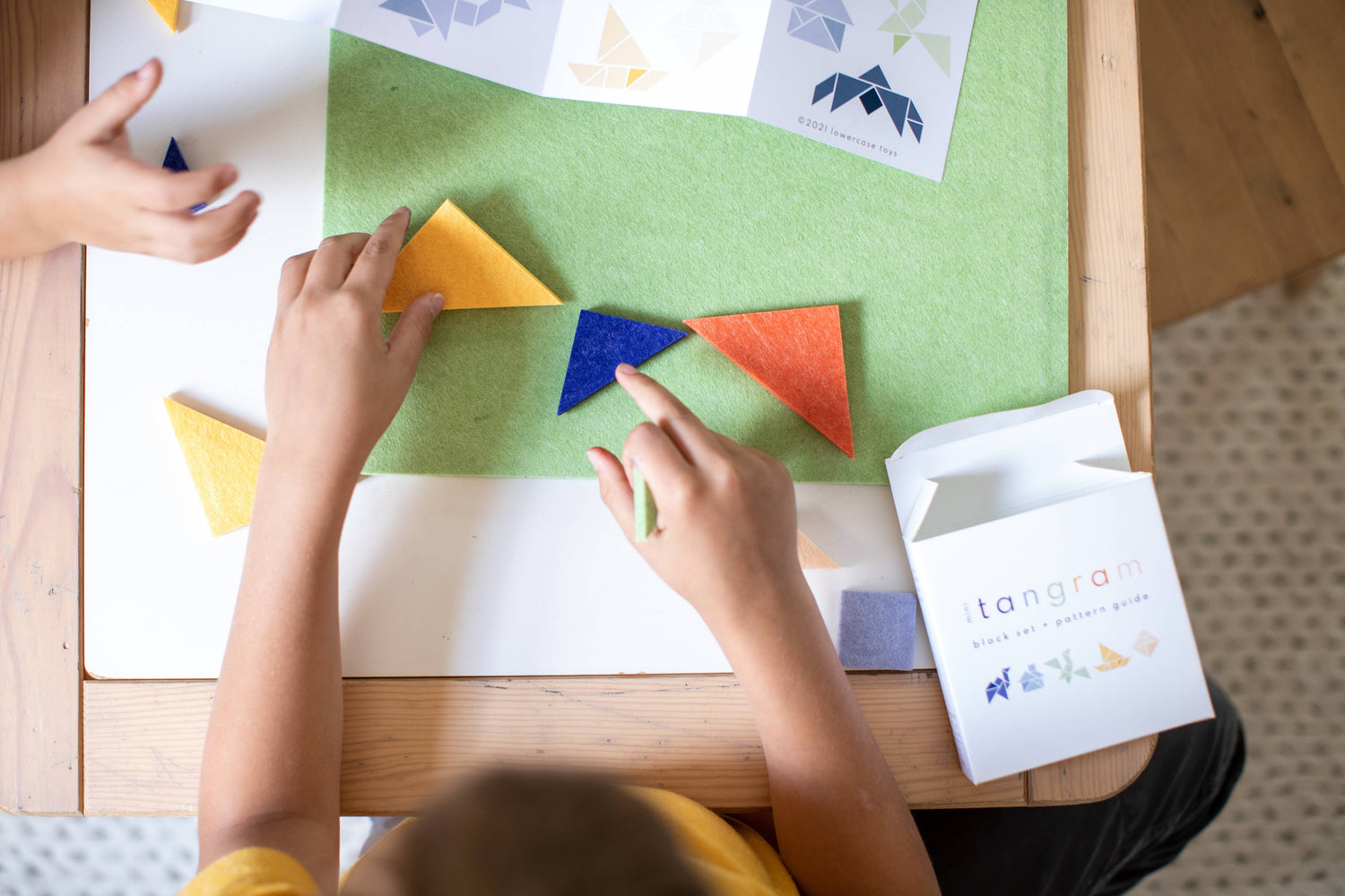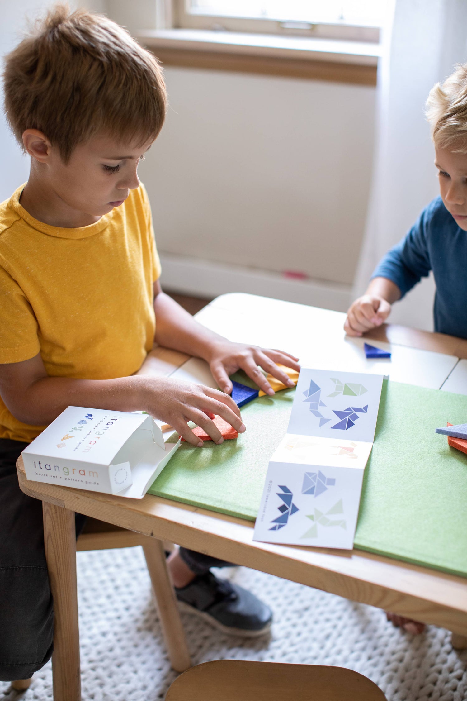 This mini felt block version of tangrams makes packing independent play easy. Perfect for on-the go play, this compact version of the classic spatial-problem solving puzzle is ready to go anywhere.